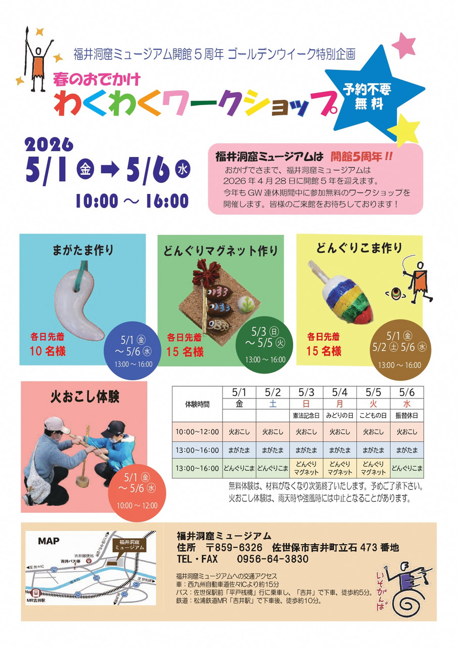 福井洞窟ミュージアムでは、GW連休期間にあわせてわくわくワークショップを開催します!